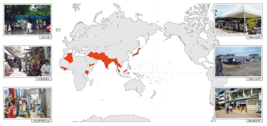 ご家庭から回収した衣類は全て海外提携業者へ輸出し、現地マーケットへの流通の橋渡しをさせていただいております。